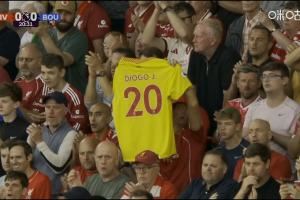悼念若塔,比赛第20分钟安菲尔德全场观众鼓掌